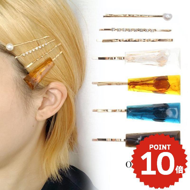 アセチスクエアヘアピンセット ヘアピン パール ゴールド マーブル スクエア...