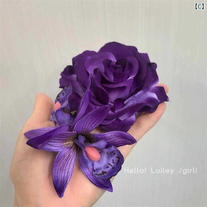 ヘアクリップ 花 バラ 蘭 レディース サイド アクセサリー ヘッドコサージュ...