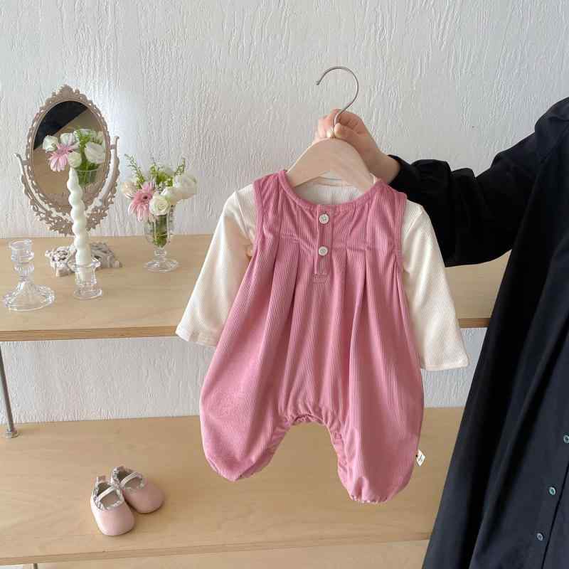 ベビー服 女の子 春秋物 リブ メロウフリル 長袖トップス ショート丈サロペ...