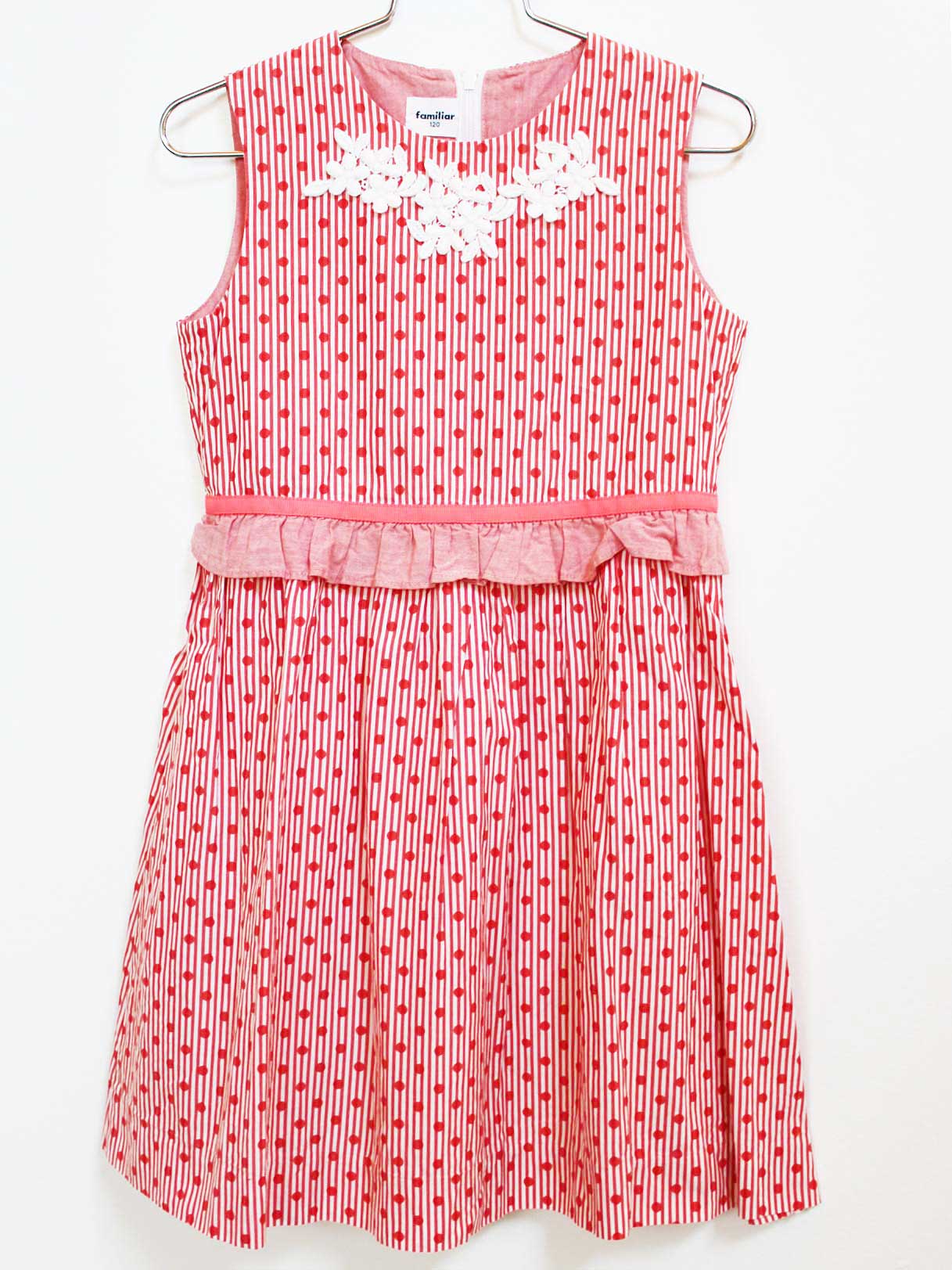 [ファミリア/familiar]120cm ジャンパースカート 赤×白【中古】子供服 キッ...