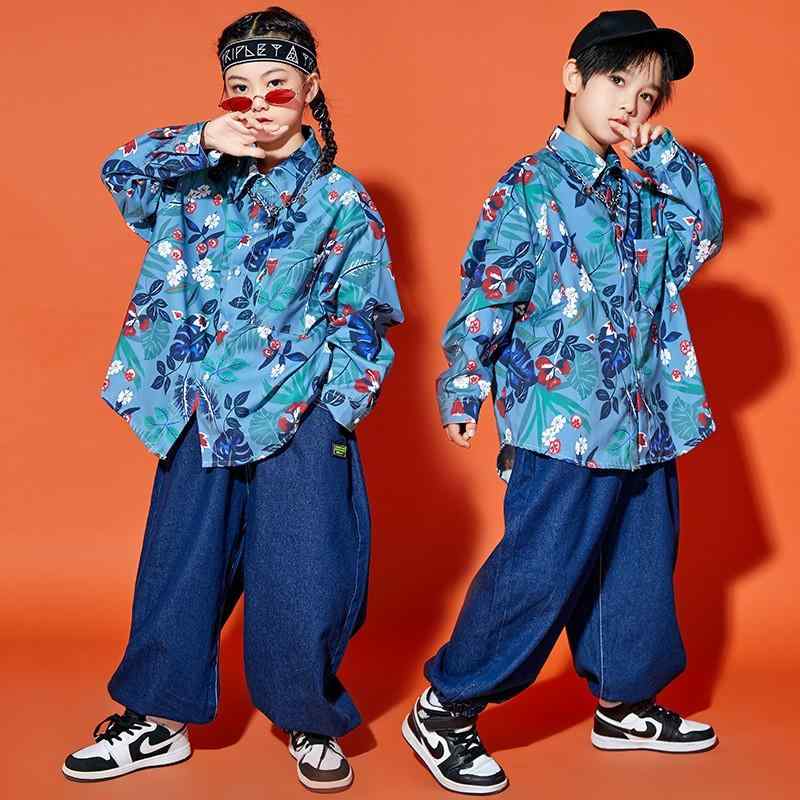 子供服 女の子 男の子 花柄シャツ ジーンズ コスチューム バンド ダンス ヒ...