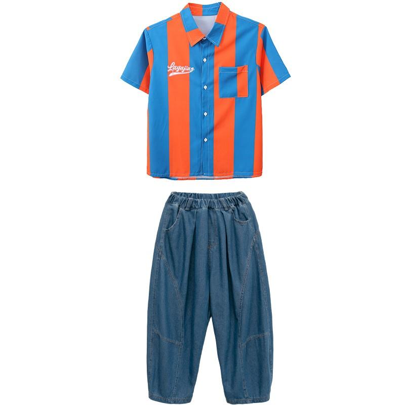 子供服 子供 ヒップホップ 衣装 女の子 ストライプシャツ ヒップホップ ボー...