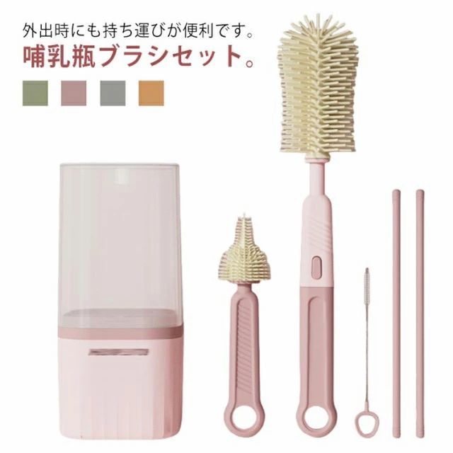 哺乳瓶ブラシ ボトルブラシ 洗浄セット ケース入り 乾燥スタンド 哺乳びん洗...