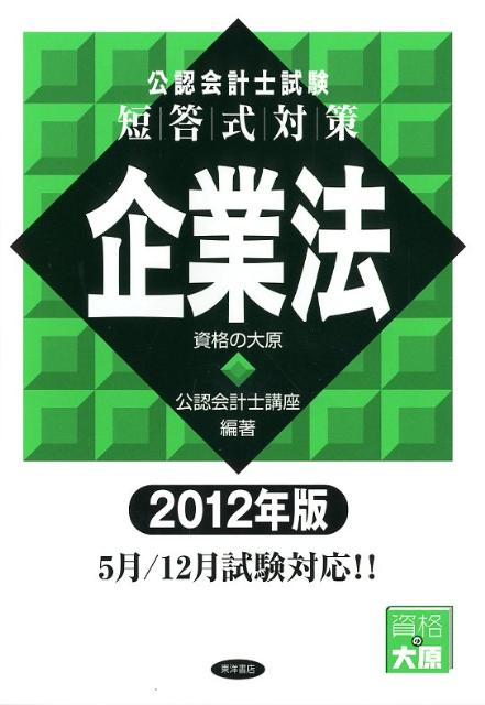 【中古】公認会計士試験短答式対策企業法 2012年版(単行本)