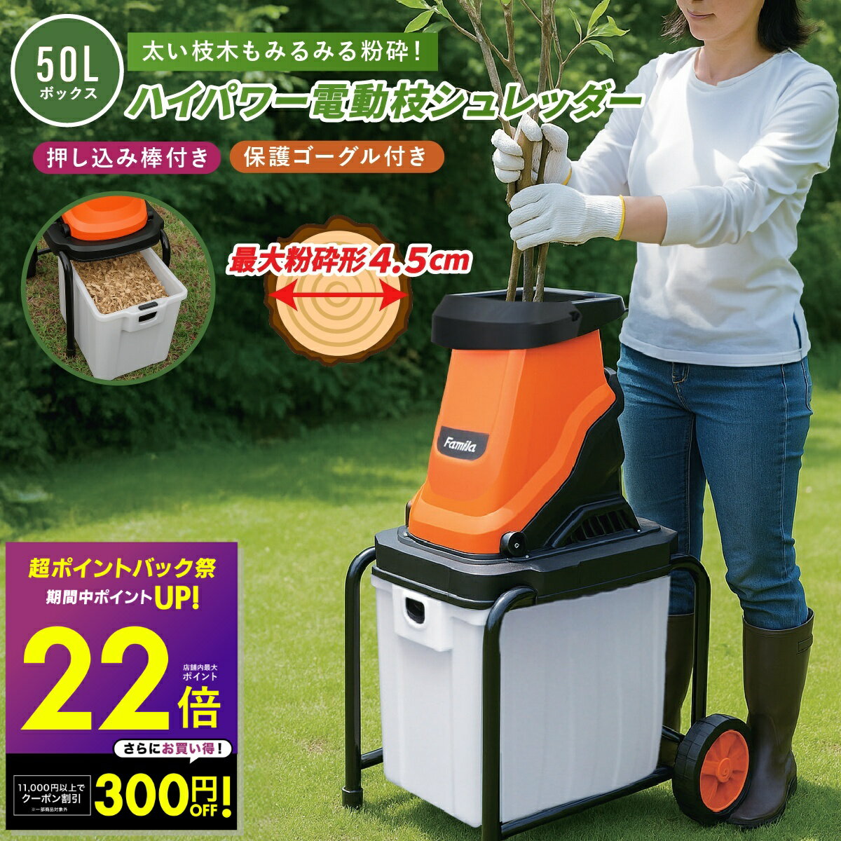 ファミラ シュレッダー 枝 電動 ウッドチップ 粉砕機 強力 ハイパワー 静音 ...