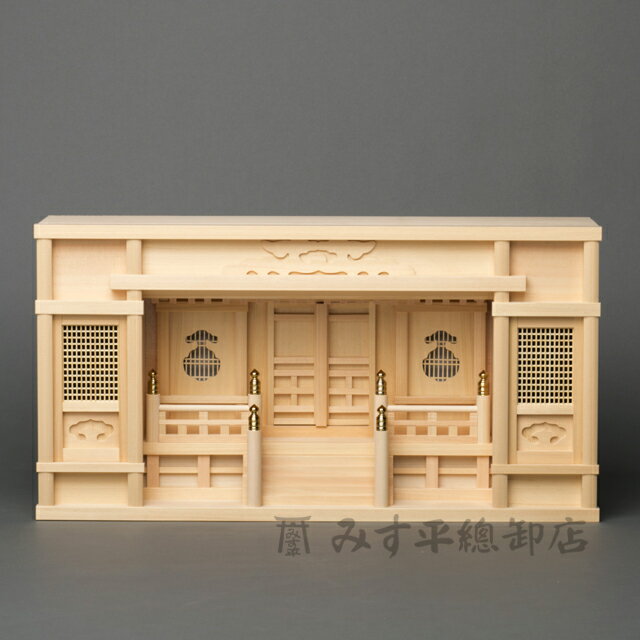 ※注文生産品の為、画像の品とは詳細が多少異なる場合がございます 商品の詳しいご案内 材質 主材:木曽ひのき 外寸 50(高)×63(巾)×26(奥)センチ 内寸 本社/30(高)×15(巾)×8(奥)センチ末社/25(高)×12(巾)×5(奥)センチ 備考 扉唐戸タイプです 画像をクリックすると詳細画像をご覧いただけます同型サイズ違いの...