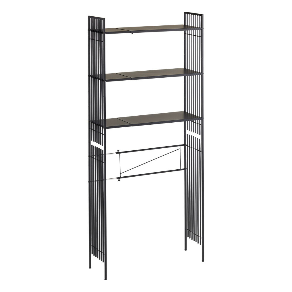 縦格子がスマートなランドリーラック。さりげない目隠しにもなるこだわり設計。幅伸縮するのでぴったり収まり良く設置出来る洗濯機上ラックです。棚板はメラミン塗装で、汚れにも強いサニタリー収納が完成します。格子のラインが美しい和モダンなデザインのランドリーラック●格子のサイドラインは単なるデザインだけでな...