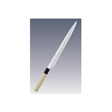 全長 約380ミリ 刃の長さ(刃先から柄まで) 約240ミリ 重さ 約145グラム 材質 鋼・白紙 ご家庭用の刺身庖丁です。魚の切り身を刺身に切り分ける為の庖丁で、ご家庭でも砥石で研ぎやすく長くお使い頂ける商品です。当店オリジナルの本刃付けしてあるので、最初の切れ味は保証します。もちろん当店で、研ぎ直し・修理ができ...