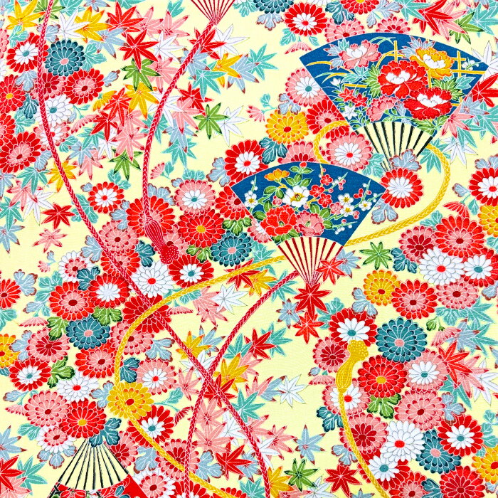 【中古】黄色地にカラフルな花々が綺麗な着物はぎれ
