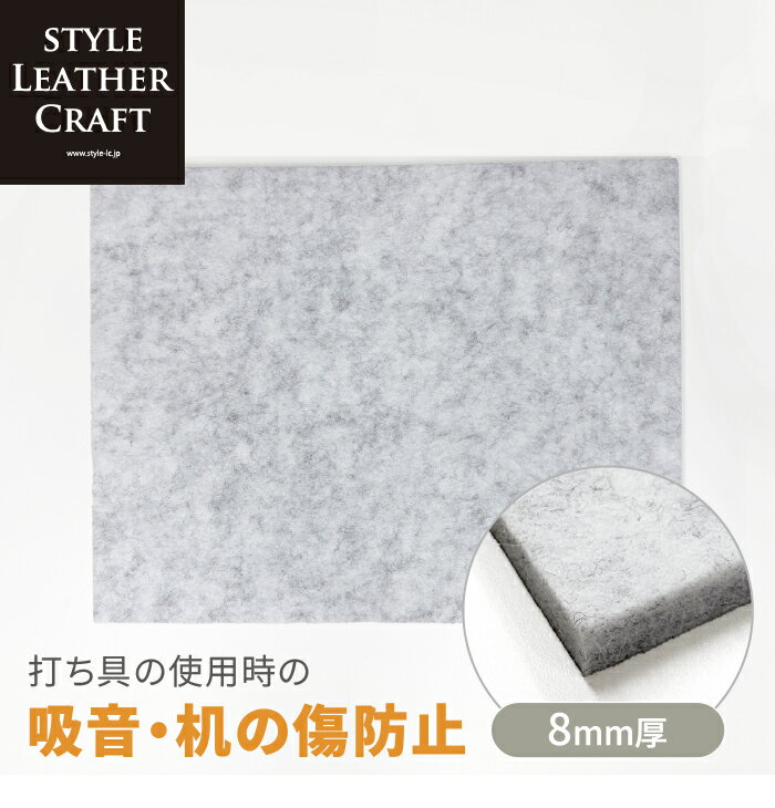 フェルト 吸音ボード レザークラフト 吸音 防音 傷防止 320×250×8mm 菱目打ちやカシメ打ち、バネホック、刻印などの打ち具の使用時に! しっかりとした厚み(8mm)の吸音ボードです。フェルト素材でとても軽く、持ち運びやすい!菱目打ち、カシメ打ち、ハトメ、ジャンパーホックなどなど、レザークラフトの打ち具の使用...