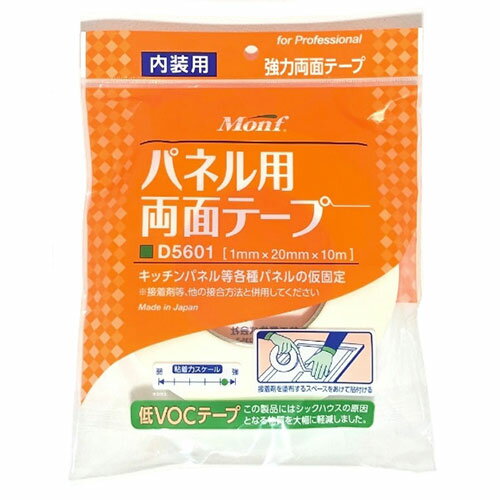 ポリエチレン発泡体基材の両面に、アクリル系粘着材を塗布した強力両面粘着テープです。シックハウスの原因となる物質を大幅に軽減した、低VOCテープです。凹凸面、粗面、平滑面への接着に。※接着剤等、他の接合方法と併用してください。【用途】キッチンパネル等、各種パネルボードの仮固定■商品詳細サイズ:幅20mm×長...