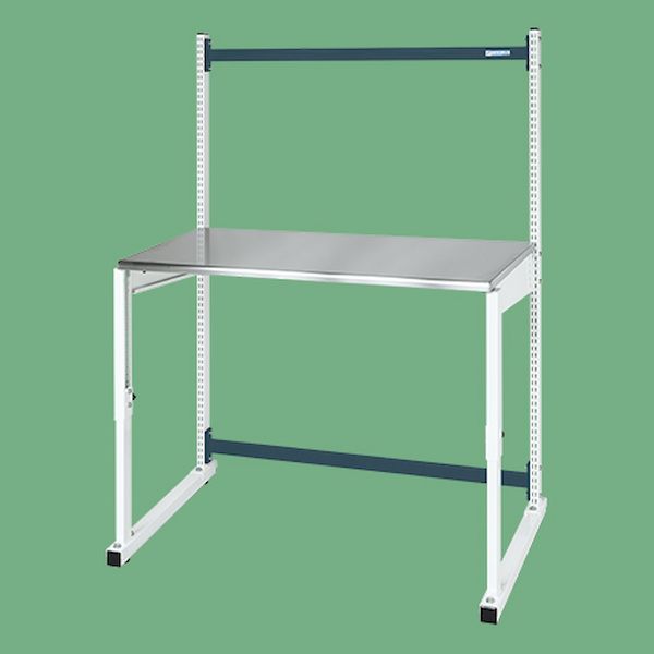 山金工業:SWS-1560TTS2-II 物流・保管機器_作業台_軽量作業台(〜500kg) ●中間棚は支柱のスリット穴に棚受金具をはめ込むだけでセット完了です。 ●中間棚の位置は25mmピッチで高さの変更が可能です。 ●中間棚には計測器や小物などの置き場所に最適です。 製品仕様 ●テーブル面材質:スチール ●サイズ(mm):W1500XD600X...