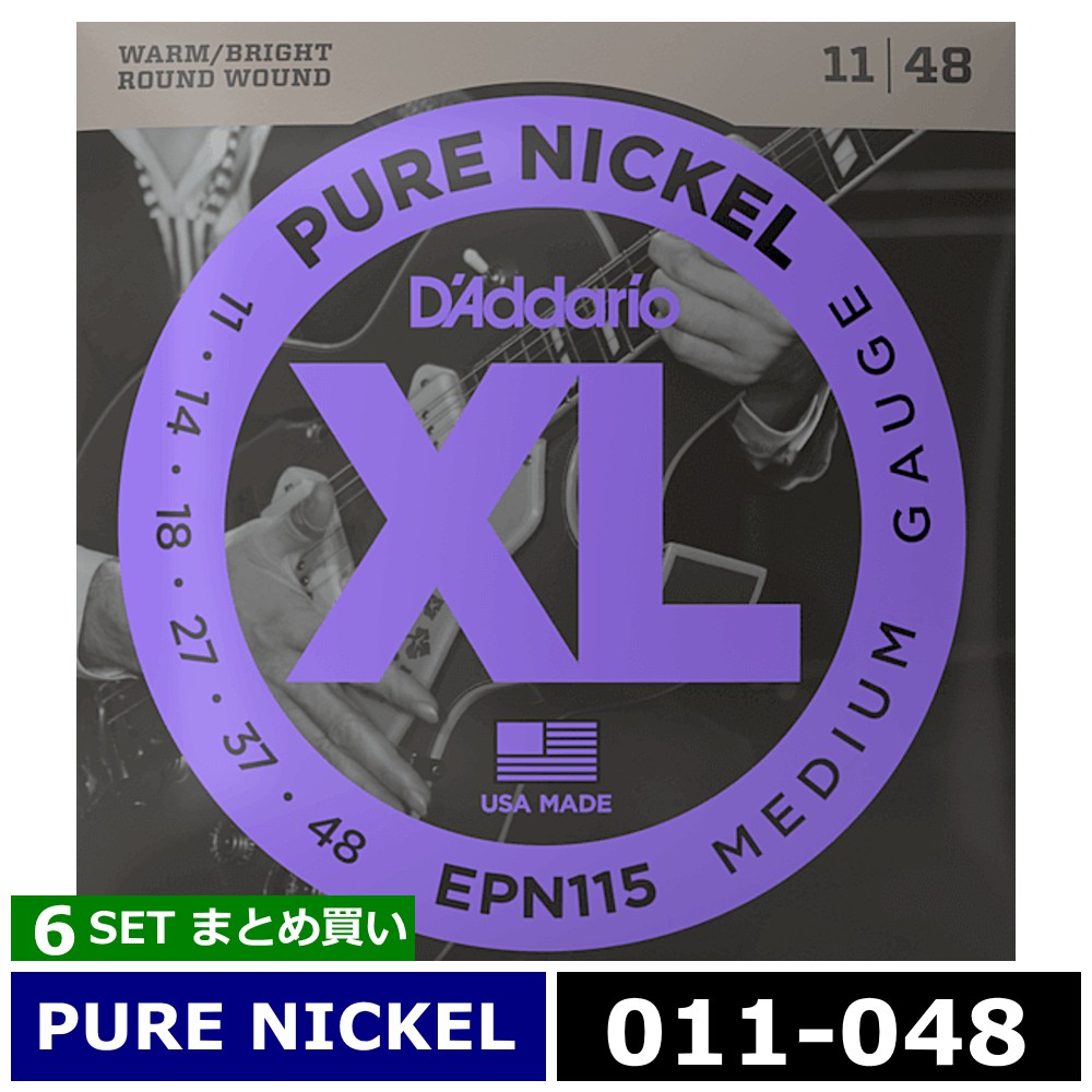 6セット D'Addario EPN115 Pure Nickel 011-048 ダダリオ エレキギター弦