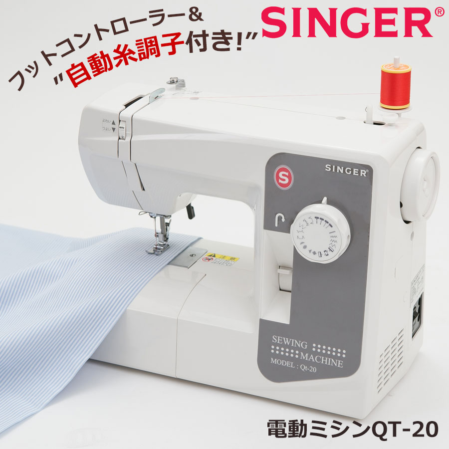 商品情報 シンガー 自動糸調子 電動ミシン QT-20 サイズ 幅39.5cm・奥行17cm・高さ29.5cm 重量 5kg 付属品 フットコントローラー/電源コード一体型 ファスナー押え ボタンホール押え リッパー 針板ドライバー ボビン(2) ミシン針(#14 x3本) 糸立て棒 フェルト 取扱説明書 保証書 ドライバー 保証期間 1年間 生産国 ...