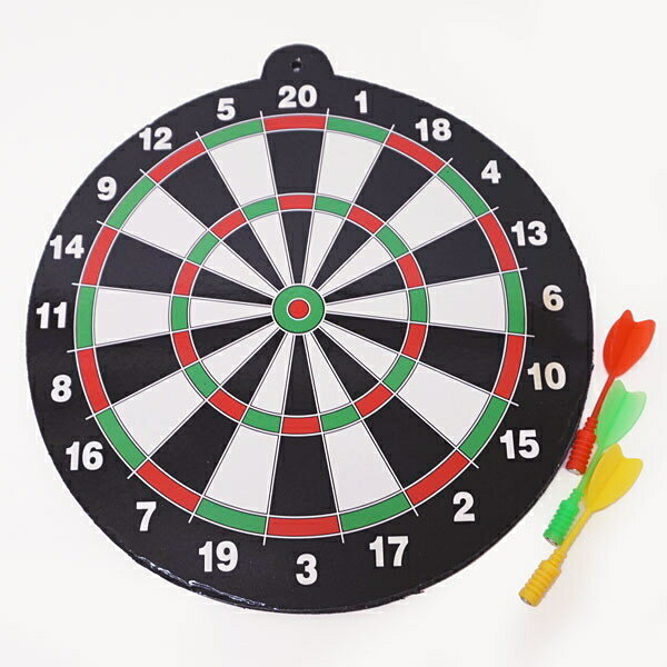 お手軽マグネットダーツ 直径24cm 【商品番号】No.7797 【商品説明】 磁石で安全なダーツセット。簡単ルールを作ってダーツが楽しめます。 【セット内容】本体的 1個、マグネットダーツ3本 【大きさ】直径24cm×5mm