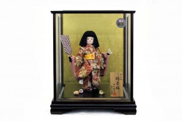 寿喜代作 童羽子板飾り 間口33m奥行き27高さ40cm 展示品です。童羽子板飾りです。西陣織古典柄で仕上げで華やかな可愛いお飾りです。お値打ち品です。 お顔 本頭 衣裳 西陣織古典柄衣裳