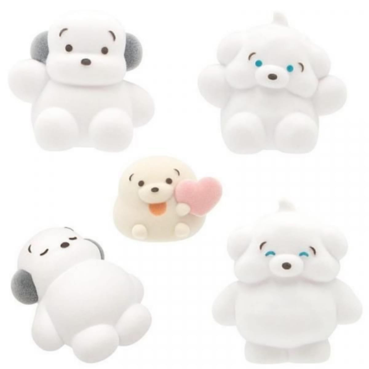 内容 1. ココモ(おすわり) 2. スモア(おすわり) 3. 犬めだかちゃん(ハート) 4. ココモ(おねむ) 5. スモア(にっこり)サイズ:全高約30-55mm 全5種コンプリートセット(全5種×各1個ずつ)SNSやLINEスタンプでじわじわ人気上昇中の『ココモとスモア』が、【ふわふわ】のフロッキーソフビになって登場です!イラストそのまま...