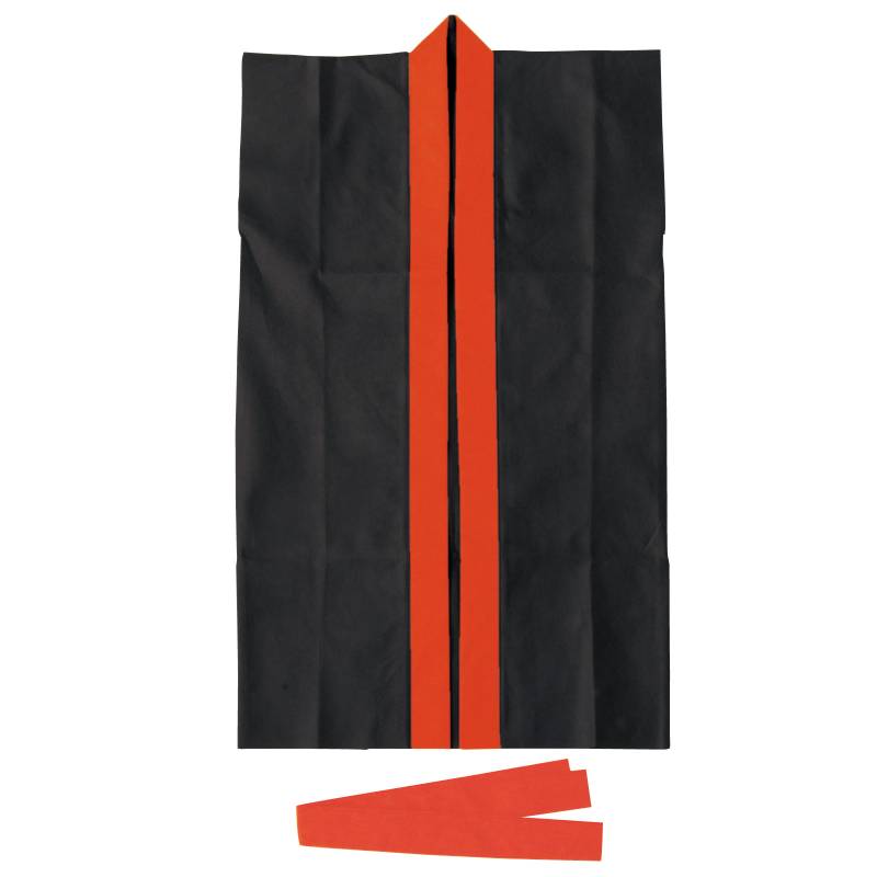 ロングハッピ不織布 黒(赤襟)S(はちまき/ハチマキ付)