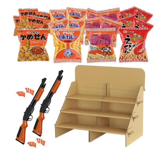 商品情報セット内容組立式ダンボール射的台×1、射的銃(吸盤付)×2、かめせん×30、味カレー×30、ポテトフライ×30、えびせん×30 *内容が変わる場合があります商品サイズ組立式ダンボール射的台:700×600×400mm、射的銃(吸盤付):485×80×25mm制作時間30分対象年齢6歳~重量2000g中国製組み立て式段ボール射的セット ...