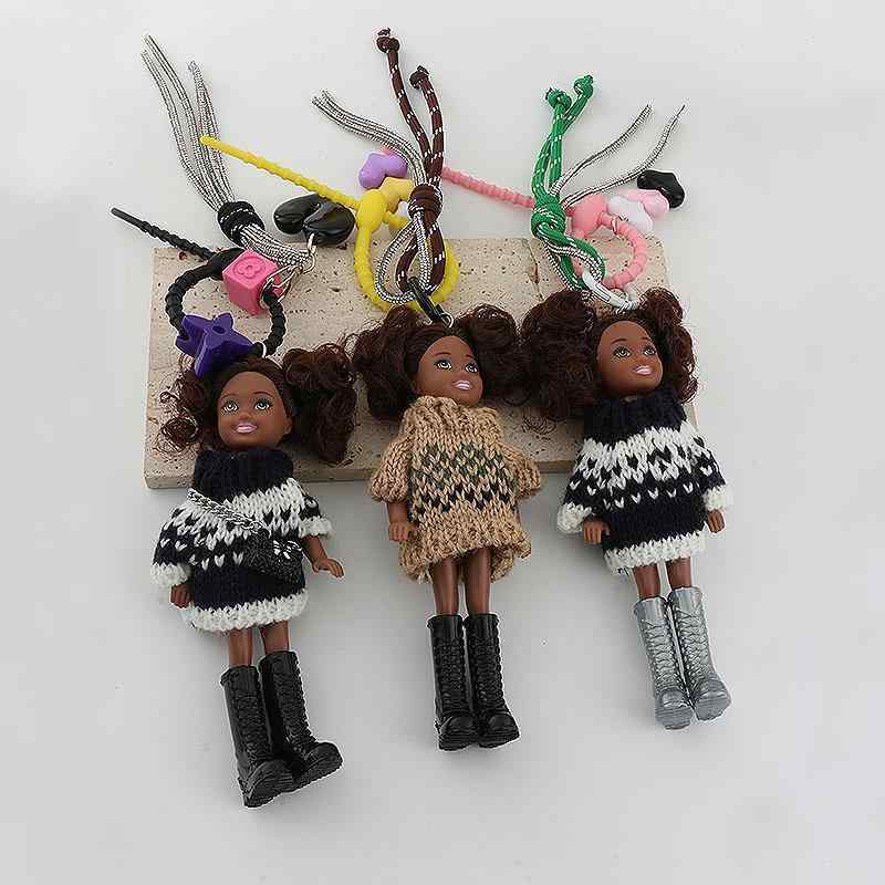 バッグチャーム レディース かわいい ニット バービー 黒人形 キーホルダー ...