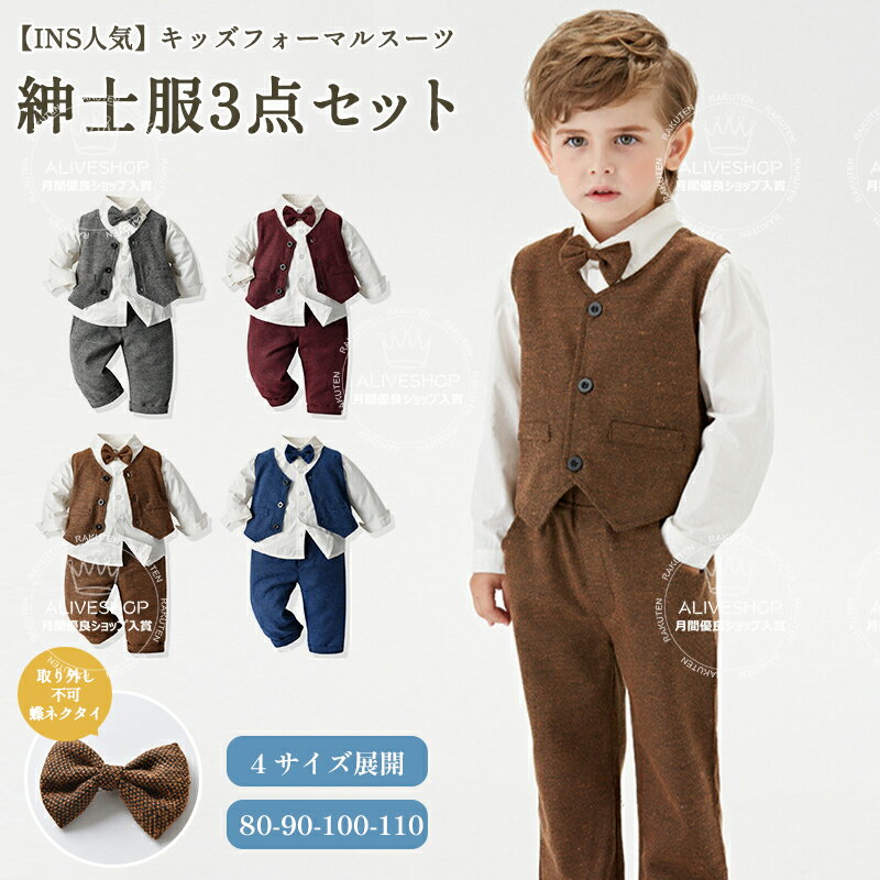 商品説明 商品番号:BABY-M004 素材:綿・ポリエステル 色:写真通り(ご参考程度)モデル:身長115cm、120cm試着 セット:ズボン+シャツ+蝶ネクタイ+ベスト(取外可能) 送料 全国一律送料無料♪【*沖縄・離島・一部地域2500円別途追加。即納品は除く。】 発送からお手元にお届けするまでさらに1~3日程お時間がかかり...