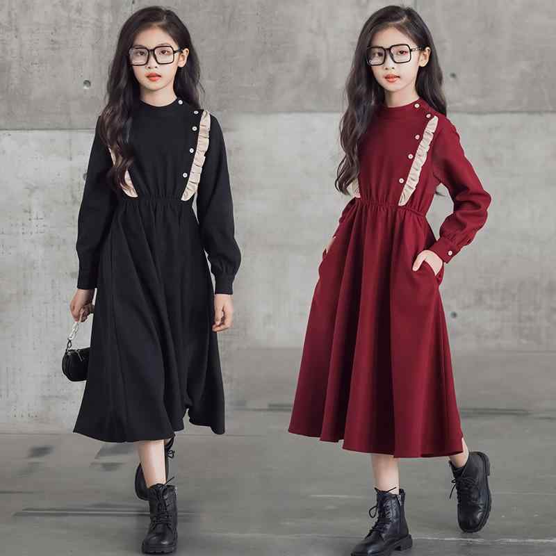 ・スタイル: スイート・素材: 化学繊維混紡・スカートの種類: ワンピース・安全等級: B類・主な生地の組成: ポリエステル繊維100%・対象: 女児・対象年齢: 中高学年(8歳以上、140cm以上)・柄: 無地・生地の加工: 起毛・シーズン: 春秋・画像: モデル着用の実写・デザイン: 長袖・スカートの形状: Aライン・糸くず処理: ...