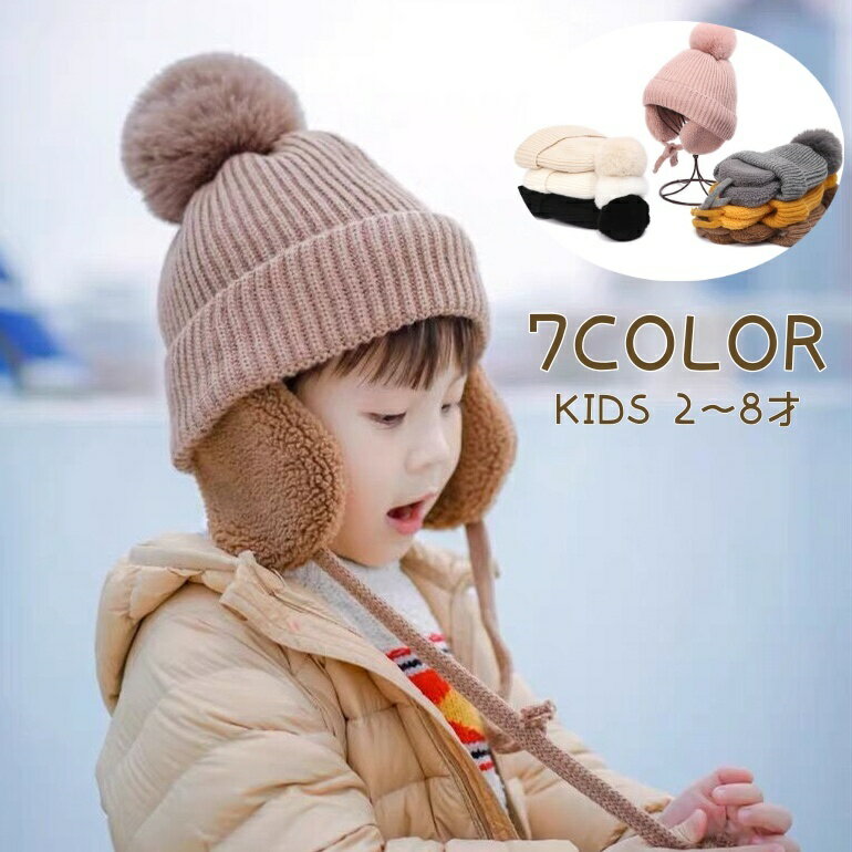キッズ キッズ ニット帽 ポンポン付き ニット帽子 ニット 耳あて 子供用 女...