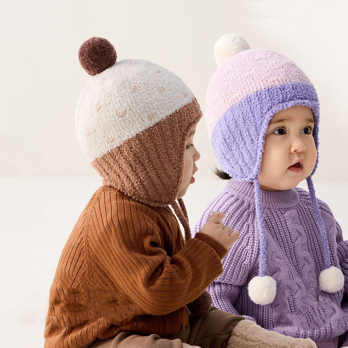 ベビー ポンポン 女の子 男の子 耳当て ベビー キッズ ニット帽