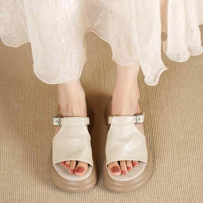 レディース サンダル 厚底 オープントゥ 一文字ストラップ フラットシューズ...