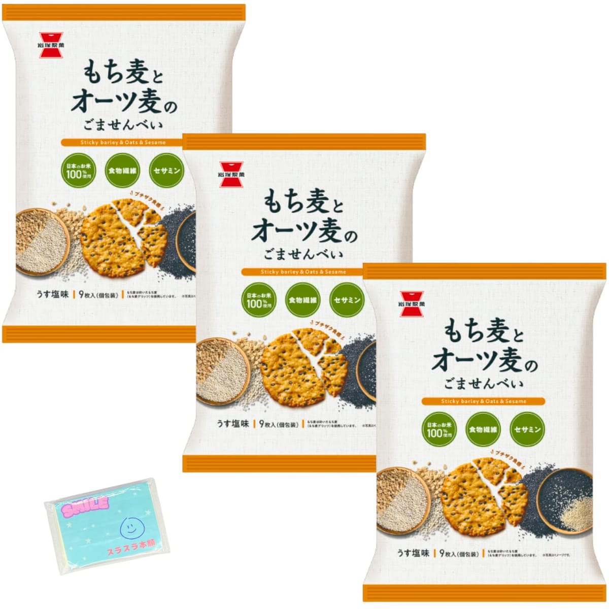 岩塚製菓 もち麦とオーツ麦のごませんべい 9枚入 ×3袋セット ★スラスラ本舗...
