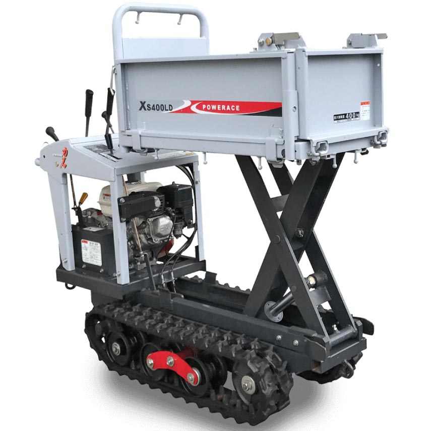 メーカー アテックス 品番 XS400LDH 機体寸法(長×幅×高) 1500×500×1050mm 機体質量 235kg 総排気 0.163L(163cc) 荷台内寸(長×幅×高) 765×405×250mm 最大作業能力 400kg 操向方法 サイドクラッチ (爪) 速度 前進 / 後進 (km/h) 1.0 2.6 / 1.1 最大出力/回転速度 (kw{PS}/rpm) ネット値 3.6 {4.9} / 3,600 荷台面地上高...