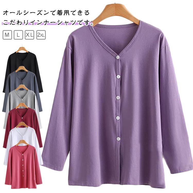 下着 トップス 長袖 シャツ メンズ 入院 秋 前開き Vネック Tシャツ インナ...