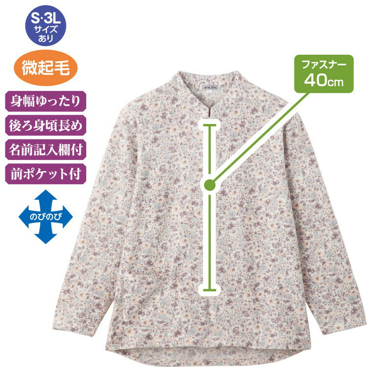 ●素材/ポリエステル95%、ポリウレタン5%、微起毛●生産国/中国●洗濯機可●ロングファスナー(40cm)●のびのび素材●身幅ゆったり●後ろ身頃長め●前ポケット付き●名前記入欄付き●婦人用 ・すっぽりかぶれて、脱ぎ着らくらく!やさしい機能がいっぱいのロングファスナーTシャツ。・お化粧したまま、すっぽりかぶれる!下か...