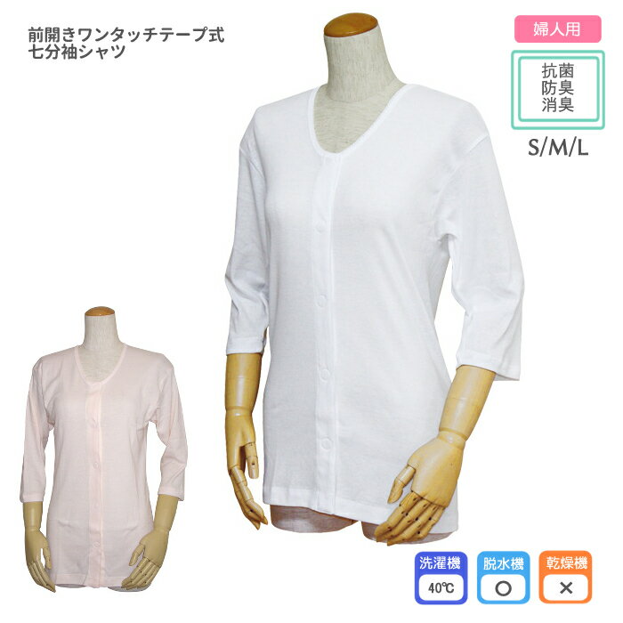 婦人 前開きワンタッチテープ式 七分袖シャツ レディース 前開き 介護シャツ...