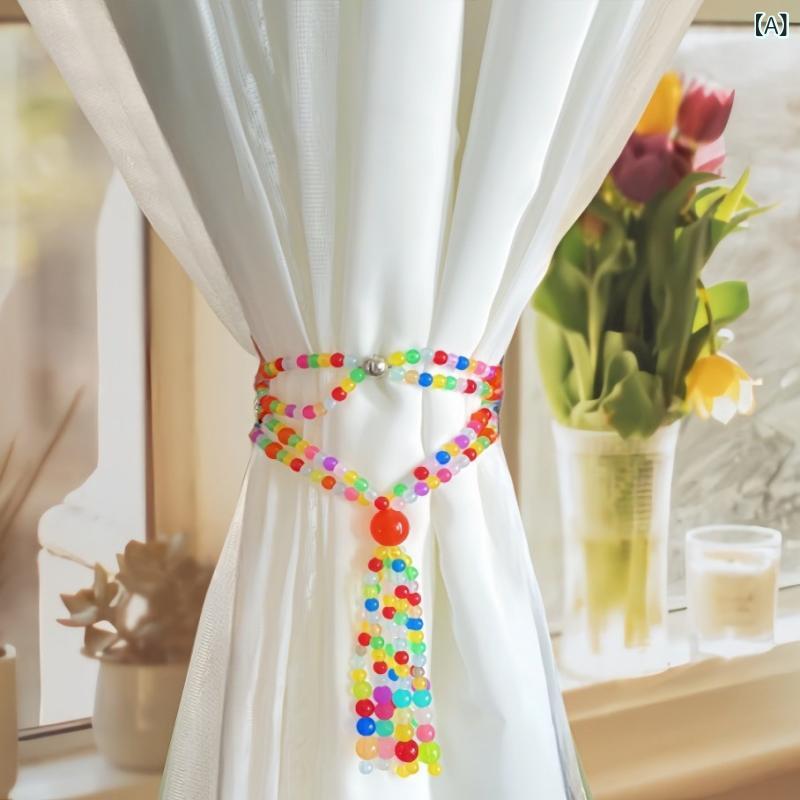 窓用カーテンタッセル ビーズ 手作り カラフルビーズ フリンジ飾り 軽やか ...
