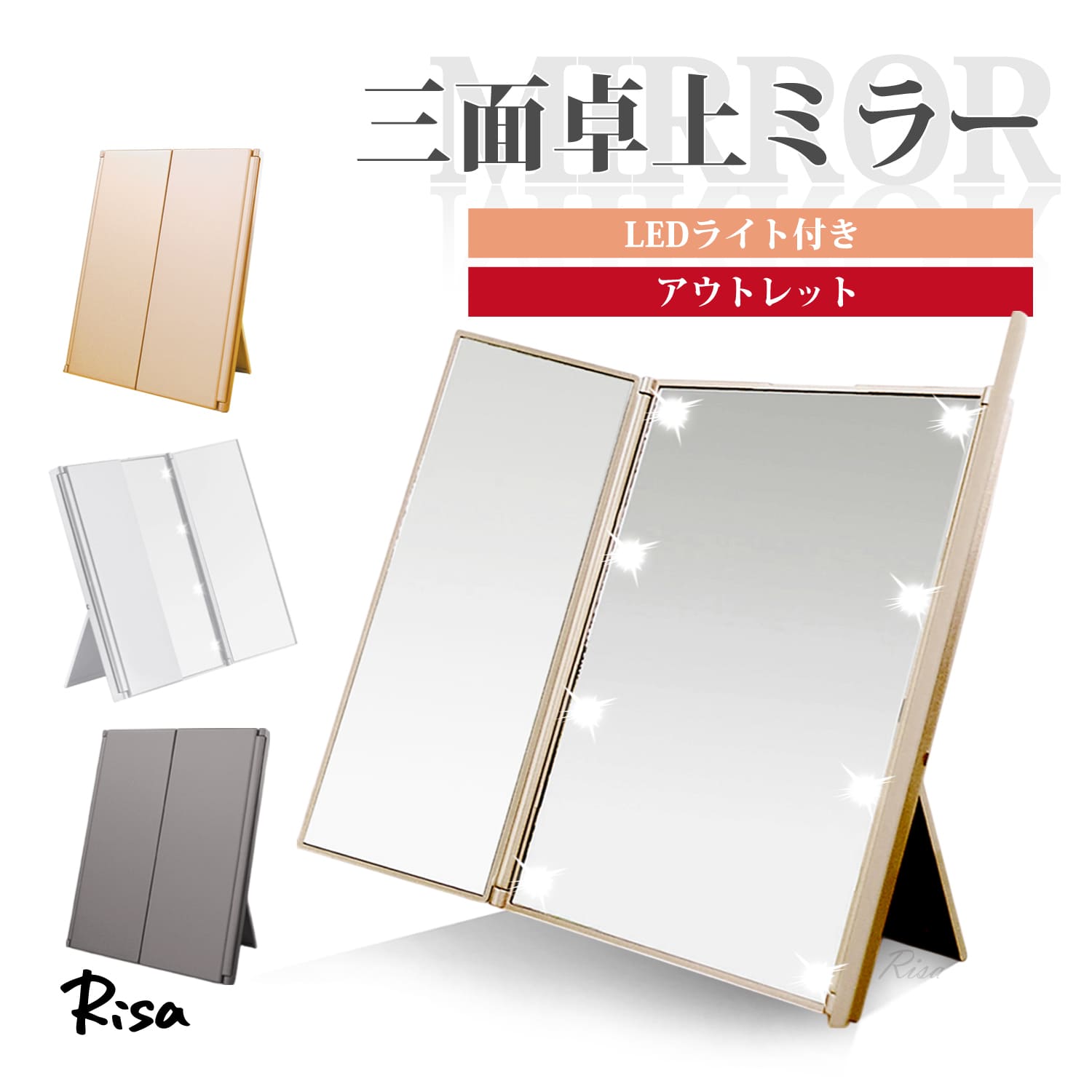三面鏡 卓上 女優ミラー 卓上ミラー 鏡 ライト led かわいい 化粧鏡 メイク ...