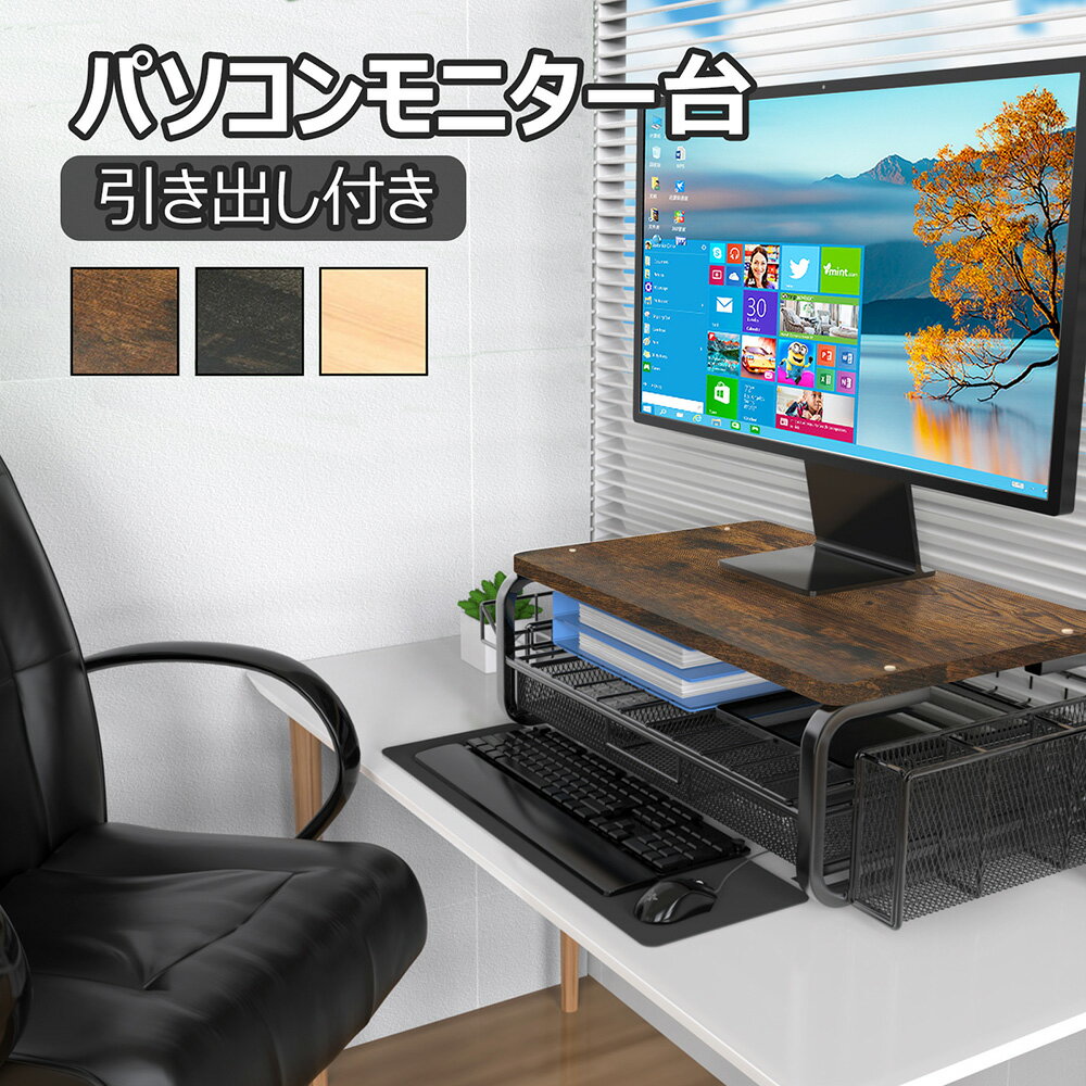 パソコンモニター台 引き出し付き 卓上 収納ラック 大容量収納 モニタースタ...