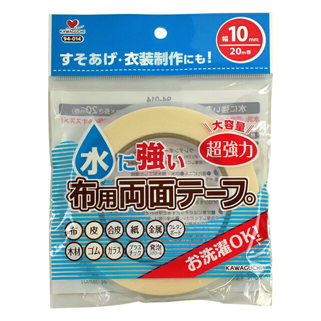 商品名水に強い布用両面テープ 幅20mm 20m巻 洗濯OK 衣装作りや裾上げに お子様の工作に カワグチ説明水に強い布用両面テープです。水洗い可なので、すそあげ・衣装・カフェカーテンなどの制作にオススメ! しなやかで曲面にもしっかり接着します。お洗濯OKだからお気に入りの生地でカフェカーテン、ハロウィンやお遊戯会...