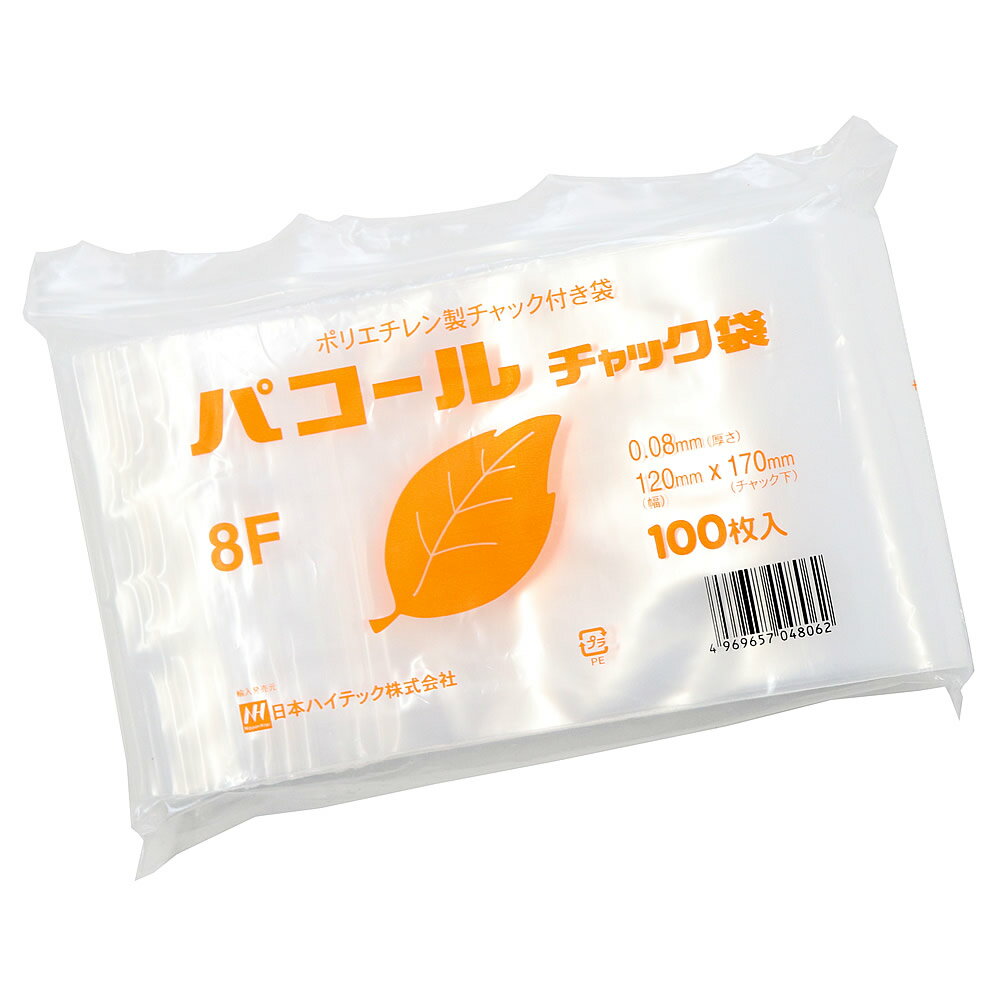 パコール チャック付 ポリ袋 規格袋 170x120mm 100枚入 8F