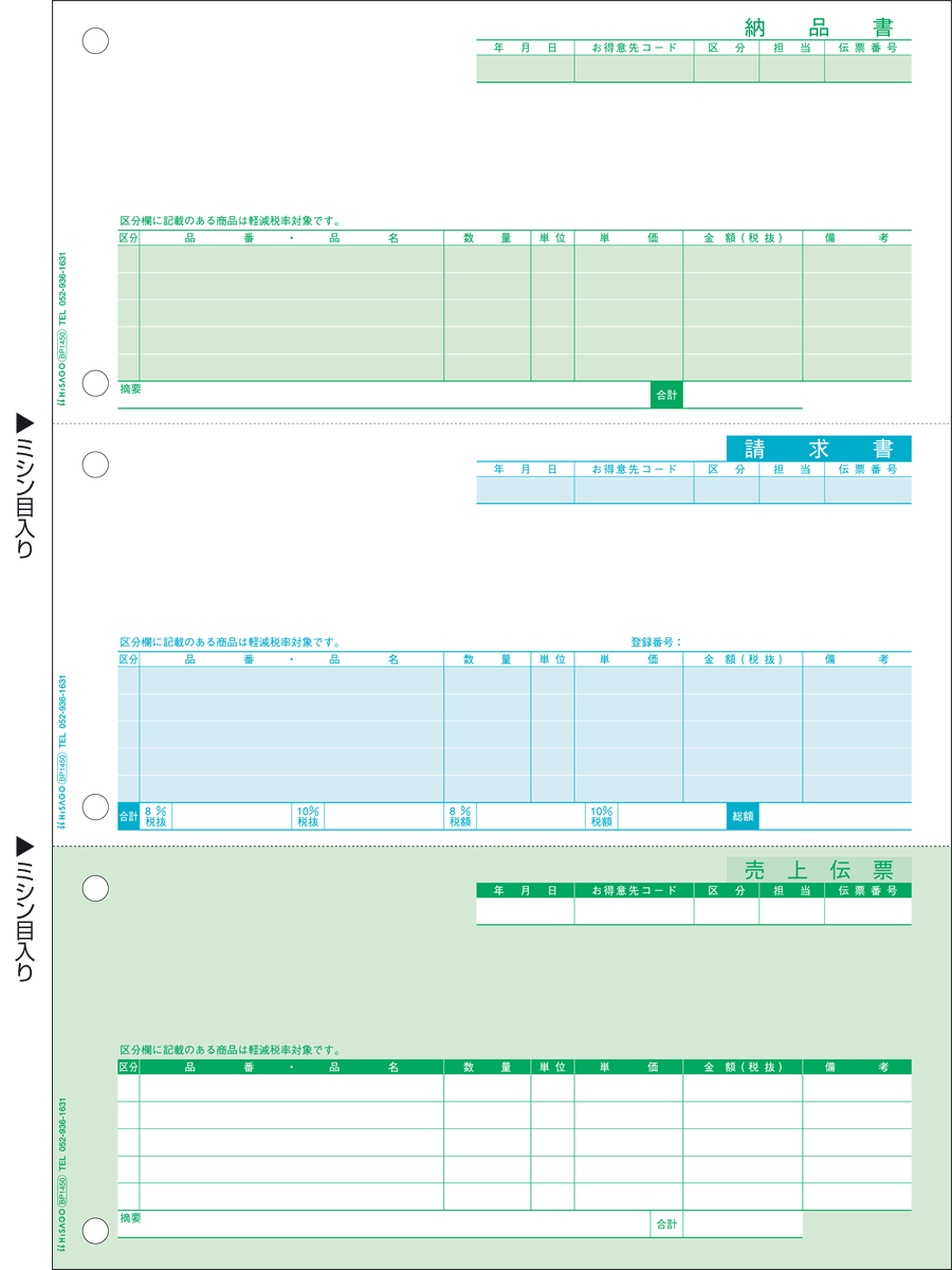 ヒサゴ BP1450 売上伝票 3面 インボイス対応 500枚軽減税率制度に対応した、インボイスタイプの売上伝票です。軽減税率対象品目は「区分」欄に記号等を印字して識別できます。請求書がインボイス対応になっているので、1枚でインボイスとして使用できます。クリアカットミシンで、簡単にキレイに切り離せます。サイズ:A...