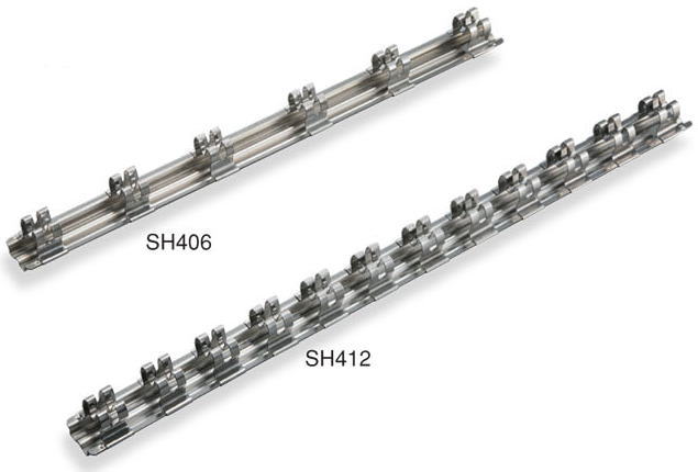 ◆ソケット、ジョイント類をスッキリ整理することができます ◆サビに強いオールステンレス製 ◆折り曲げ加工で弾力性があり、抜けにくい ◆ねじ穴付きで、壁掛け、デスク固定OK 差込角 12.7mm(1/2") 品番 差込角(mm) ソケット ホールド数 寸法(mm) 質量 (g) D H L SH406 12.7 6 20 19 250 50 SH410 10 310 67 S...
