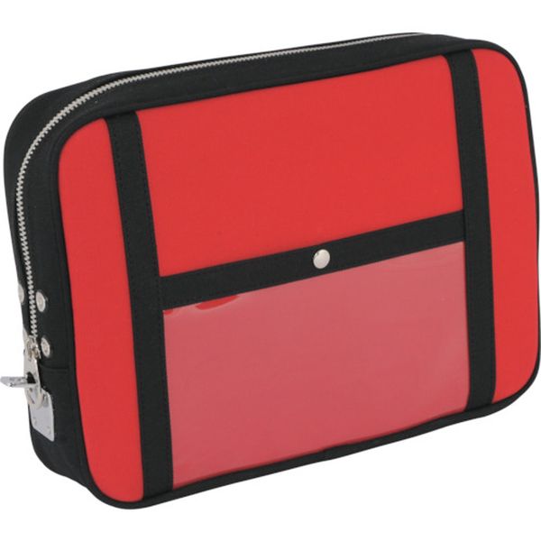 ・擦り切れに強く、耐久性に優れた帆布生地を使用したポーチです。・南京錠で施錠可能な金具の付いたタイプです。・片面に宅配伝票用透明ポケットが付いているので梱包無しでそのまま配送することができます。・A4用紙サイズまで入れられる大型ポーチです。・本社・支社、工場間の書類等のやり取りに。・A4サイズまでの...
