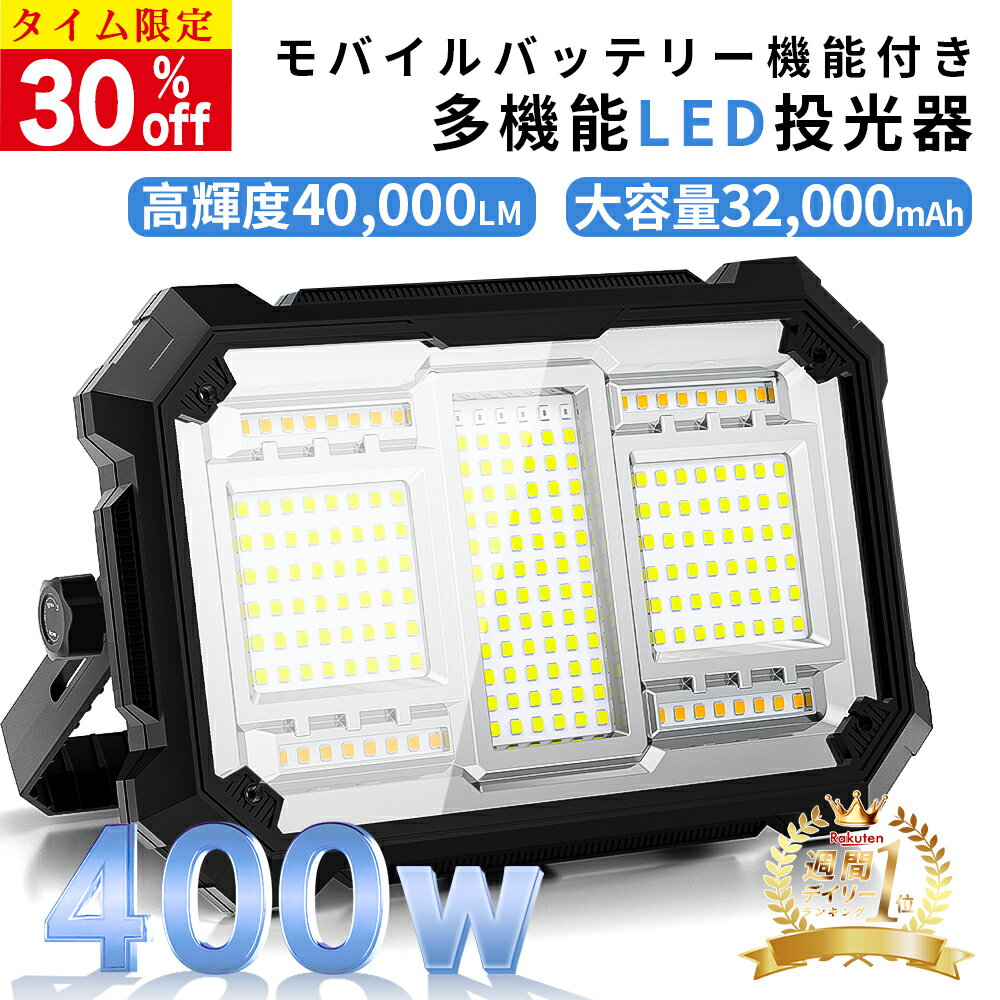 \限定30%off/楽天1位 400W 投光器 充電式 led 40,000lm超高輝度 16時間連...