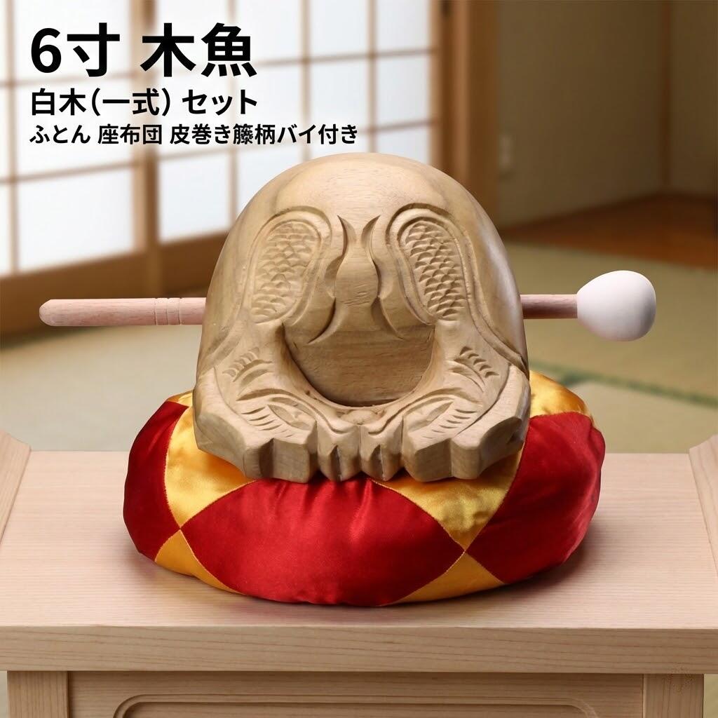 6寸 木魚 お盆用品 白木(一式) 横巾 セット 17*15cm 仏具 お彼岸 ふとん 座...