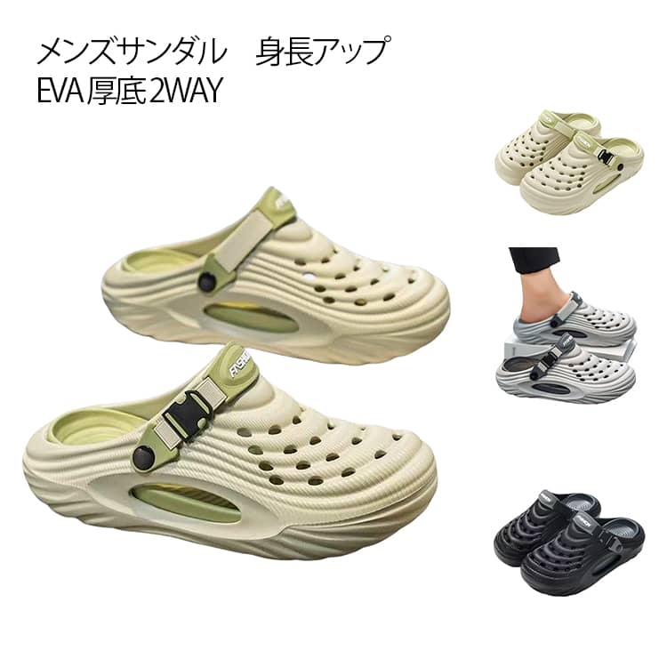身長アップ メンズサンダル クロッグサンダル 2way サボサンダル メンズ 靴 ...