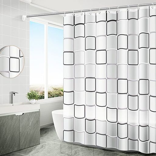 シャワーカーテン 90 x 180cm 灰色のチェック バスカーテン 防水 防カビ加工...