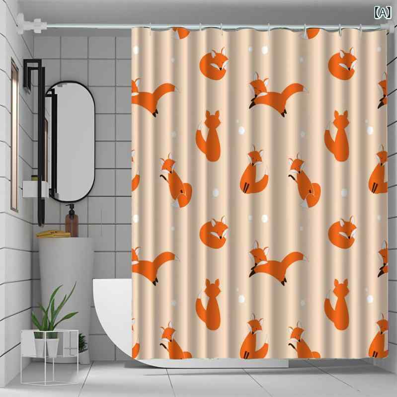 ・主な素材: ポリエステル・スタイル: アニマル・柄: キツネ柄・サイズ展開: 90x180cm、120x180cm、150x180cm、180x180cm、180x200cm・タイプ: 防水シャワーカーテン・特徴: 穴あけ不要