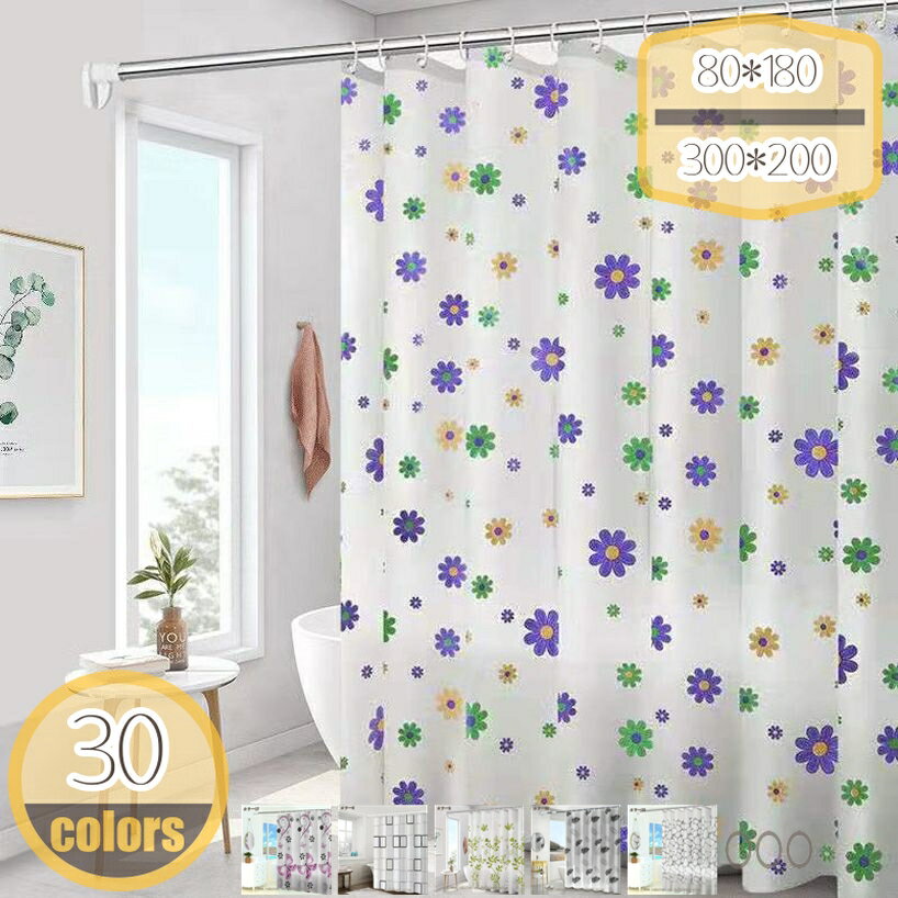 ・主な素材: ポリエステル・スタイル: モダンシンプル・サイズ展開: 幅90cm×丈180cm、幅120cm×丈180cm、幅150cm×丈180cm、幅180cm×丈180cm、幅180cm×丈200cm・カテゴリ: シャワーカーテン・機能: 防水・取り付け方法: 穴あけ不要