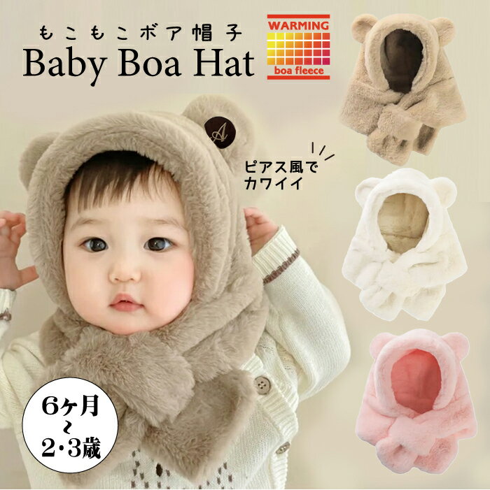 もこもこ♪くま耳帽子 クマ耳 ベビー ニット 帽子 マフラー 赤ちゃん みみ付 ...