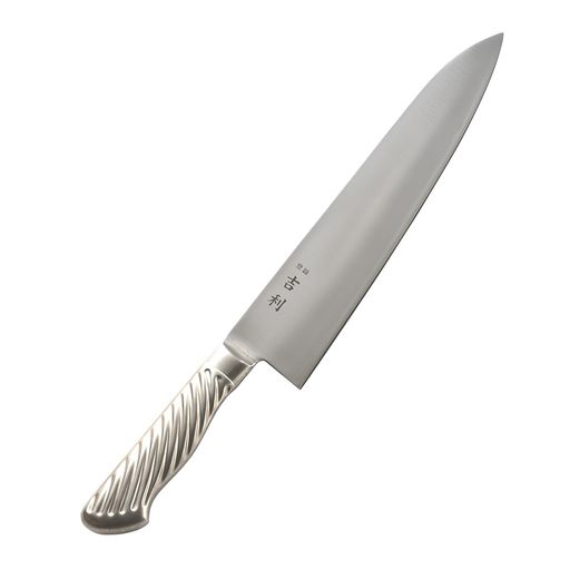 牛刀包丁は世界中で広く使われている西洋の万能包丁です。 スウェーデン鋼は不純物が少ないので切れ味が鋭く弾力性があり折れや欠けに強い 刀身とハンドルが一体成型で菌やバクテリアの繁殖を防ぎます。熱湯消毒もOK 両刃ですので右利きの方も左利きの方も扱いやすい包丁です。 全長370mm刃渡り240mm重量約214g日本製